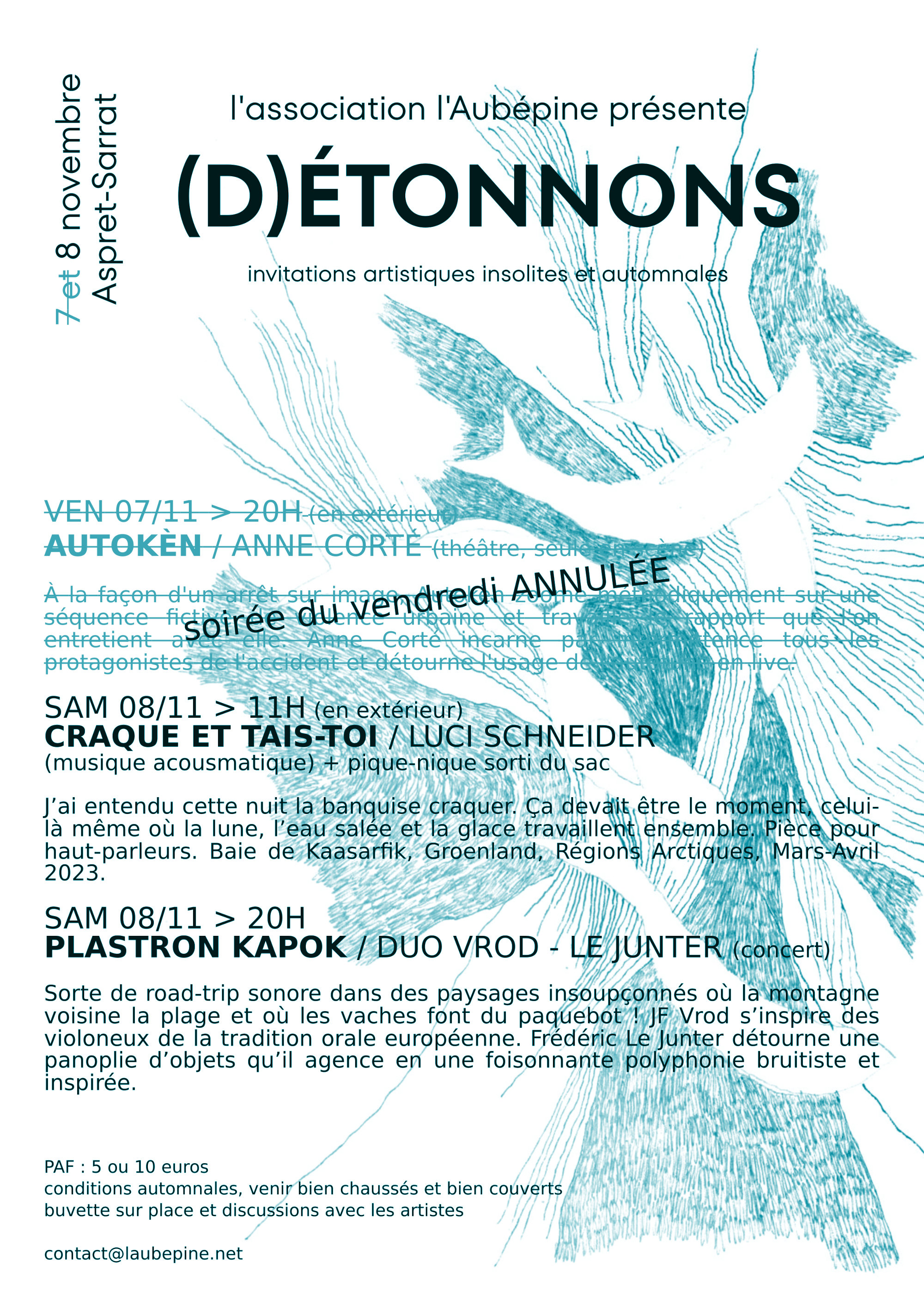 L'Aubépine est une compagnie de spectacle vivant indiscipliné créée en 2017, elle œuvre principalement sur le secteur des arts de la rue et de l'espace public par le moyen de formes artistiques variées et singulières. Elle porte notamment les productions d’Alban de Tournadre. L’Aubépine déploie également sa vie associative dans le Comminges, au pied des Pyrénées. Elle développe progressivement un projet qui vise à mêler les savoir-faire, le faire ensemble, et la création artistique.